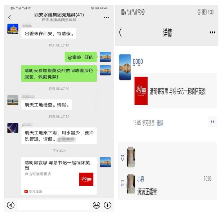 縷縷春風(fēng),綿綿細(xì)雨,說(shuō)不及對(duì)革命烈士的無(wú)限深情,道不盡對(duì)烈士英魂的無(wú)盡哀思。在黨支部書(shū)記的宣傳呼吁下,公司職工紛紛參與了學(xué)習(xí)強(qiáng)國(guó)平臺(tái)關(guān)于“清明寄哀思 與總書(shū)記一起緬懷英烈”的微信轉(zhuǎn)發(fā)活動(dòng),并在黨建學(xué)習(xí)群進(jìn)行了宣傳轉(zhuǎn)發(fā),自覺(jué)放平手機(jī),為英烈默哀一分鐘。